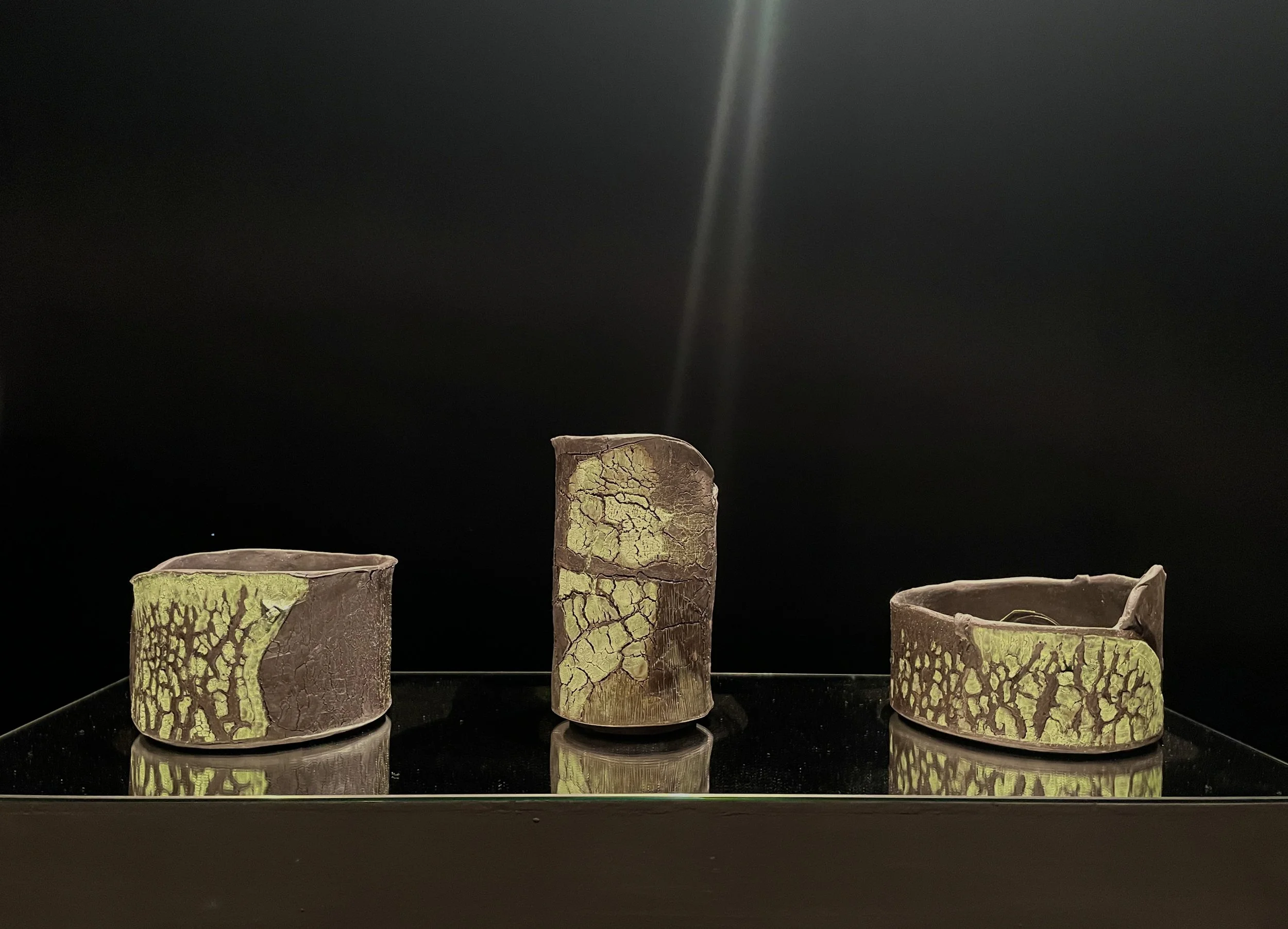 This series of pots paid homage to the beauty and significance of the trees at my studio's home, Gasworks Creative Precinct, which is a magnificent parkland with many established trees. When one pays attention, these trees reveal their amazing resilience and adaptability, responding to climate and human interference. Each species of tree changes its bark according to the seasons. Gum trees respond immediately to extreme weather, shedding bark and sometimes limbs in the heat. I observed the Sydney Blue Gums and the River Red Gums in the park healing from damage - there have been repeated incidents of graffiti scratched into their trunks - it's visible for months, and then it's gone, just like us renewing our skin, they renew theirs.
